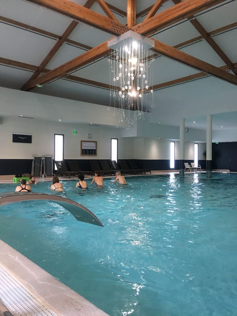 La piscine est truffée de jets massant, de nage à contre-courant… Mais des experts (diplômés d’État) nous proposent de nous aider pour relever des défis et atteindre nos objectifs grâce aux bienfaits de l’eau. Des cours d’aqua en petits groupes sont proposés pour « alléger notre masse corporelle » mais aussi travailler le cardio. La piscine mon lieu préféré en ce moment #MadameBaleine : ça me porte, ça m’apaise mais ça me permet aussi de retrouver un peu de force, de souplesse et de mobilité articulaire.